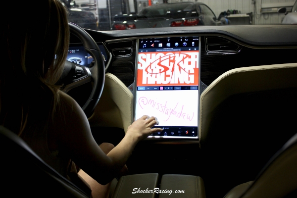 For her shoots, Tayla has been lucky to be friends with Diamond Graphics in Cedarburg, WI as they have provided some of their shop cars and the shop to be used as the back drops.  Miss Drew took the opportunity to shoot with everything from a Tesla Model S P85 to a Shelby GT350 Mustang and even an Aston Martin.  "I love the bright white lighting in the shop, and the fact that I have access to the whole shop."  Tayla exclaimed.