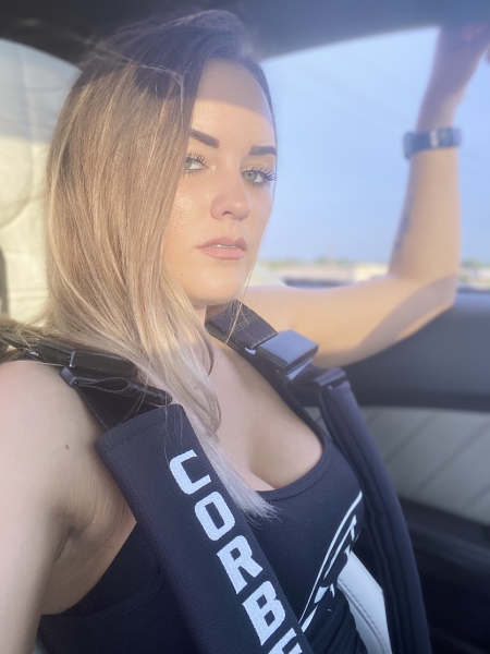 Laura first found her love for cars from her Father. She tells us, “I’ve been into the car scene since I was little. My dad had a love for cars and passed it along to me. I first fell in love with the loud sound of vehicles and later on in life, as I grew up, I found the love for Mustangs. It has been my dream, since I was a kid, to have one of my own.” Laura now owns a 2013 white Ford Mustang GT. Her Stang features; glass roof, JLT Intake, headers, x-pipe, long tubes, axle back, Air Lift 3P, Race Star Drag Pack, limo tint all the way around, carbon fiber dash kit, custom floor mats, custom badges, Corbeau Racing seats, Corbeau harness, harness brace, upgraded coyote shifter, GT 500 wing, carbon fiber decklid, front spoiler, and upper and lower front grills.
